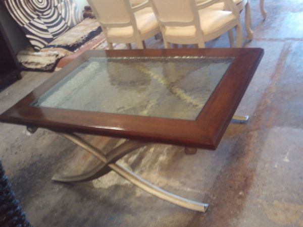 Wood and Glass Contemprary Coffee Table w/Metal Legs - 49.5''L x 34''W x 20''H.