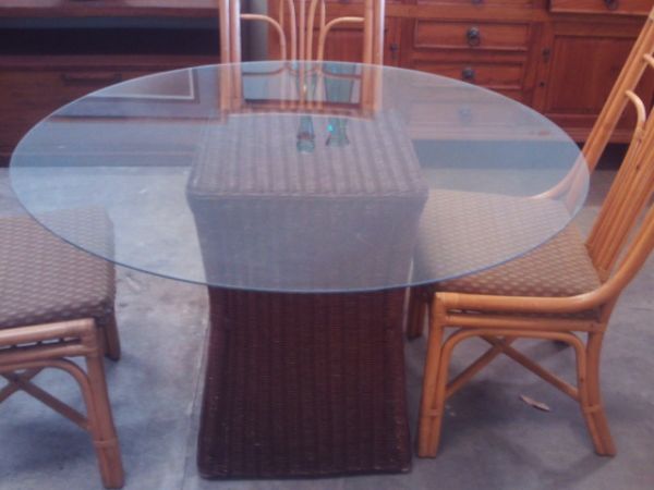 Palecek Wicker Table Base w/Glass Top - 47''diameter x 29''H.