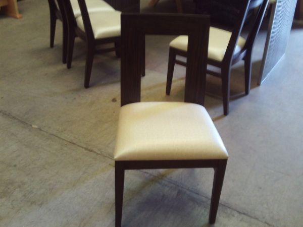 SET OF FOUR - Modern Dining Chairs - Wood with High End White Vinyl Seats.