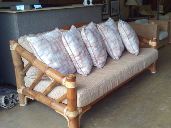 Elephant Bamboo Couch w/Pillows (5) - 86''L x 42''D x 36''H.
