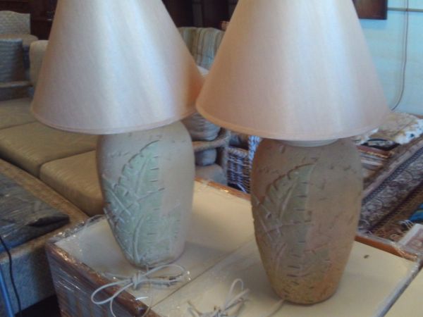 Stone Look Lamp w/Raised Leaf Design (one of two) - 32''H.
