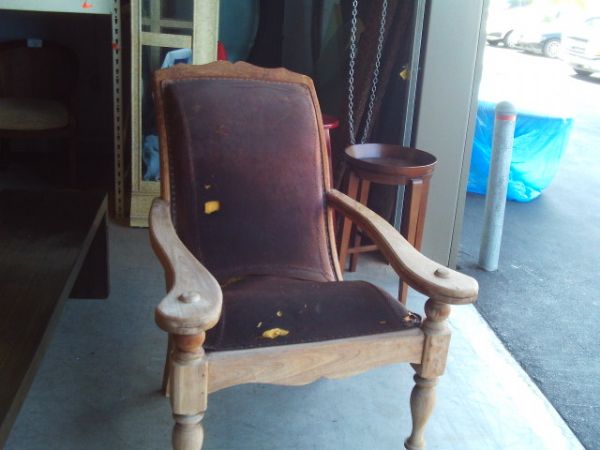 True Plantation Chair w/Swing Out Arms/Boot Jacks - Braided Leather Upholstery - Needs TLC.