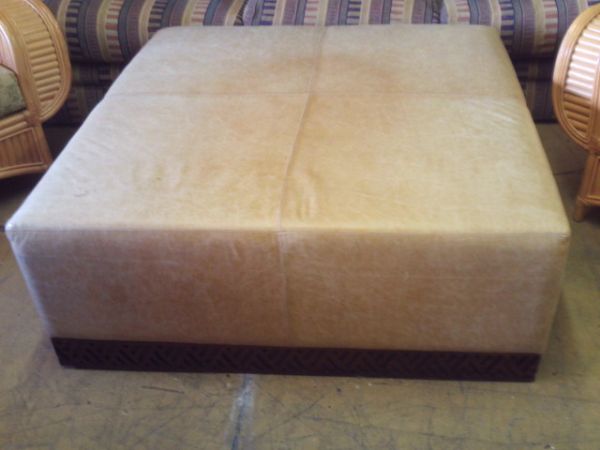 Leather Ottoman w/Wood Base - 46'' x 46''.