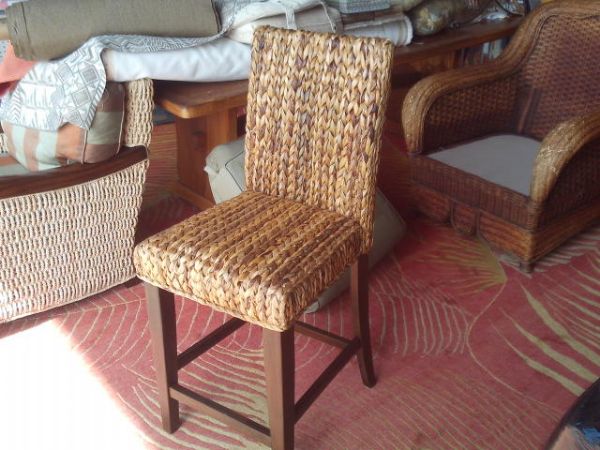 SET OF FOUR - Woven Banana Leaf Counter Height Barstools - 25''H.
