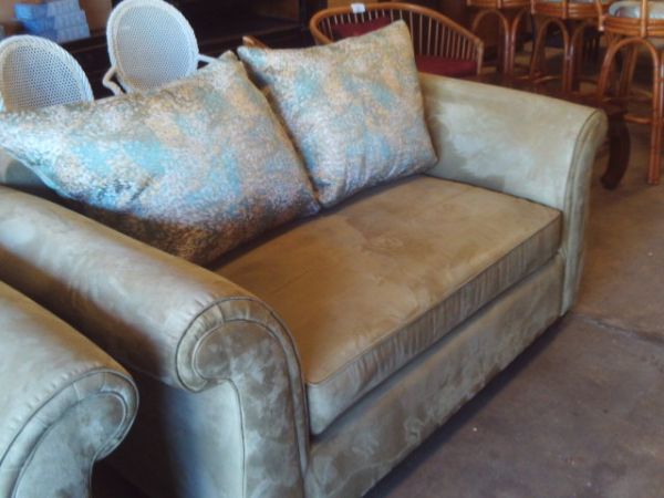 68'' x 39'' x 33'' Green Ultrasuede Loveseat.
