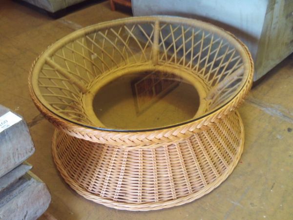 37''diameter x 17''H Rattan Coffee Table w/Glass Top.