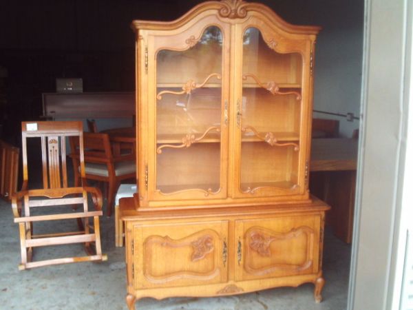 Antique Belgin Tiger Oak China Hutch - 51'' x 18'' x 75''H.