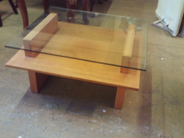 34'' x 29.5'' x 13''H Oak Base Glass Top Coffee Table.