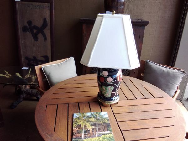 Ginger jar lamp with floral pattern.