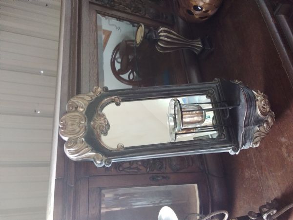 Mirror with shelf and candle holder dark wood w/gold.