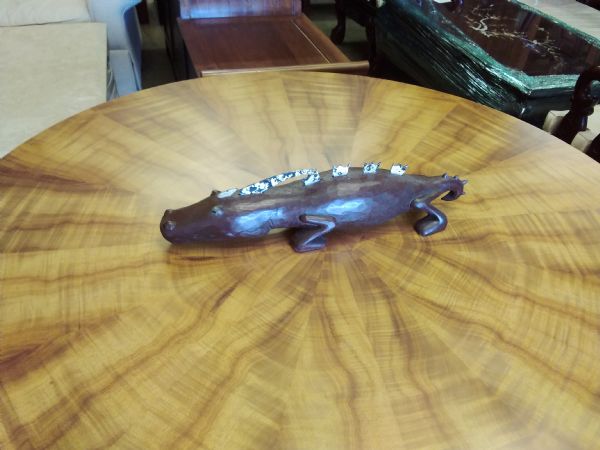 Wooden Sculpture - Happy Crocodile King.