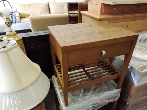 Wood and bamboo one drawer and table/nightstand w/shelf.