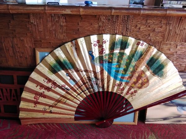 Asian wooden fan with peacocks.