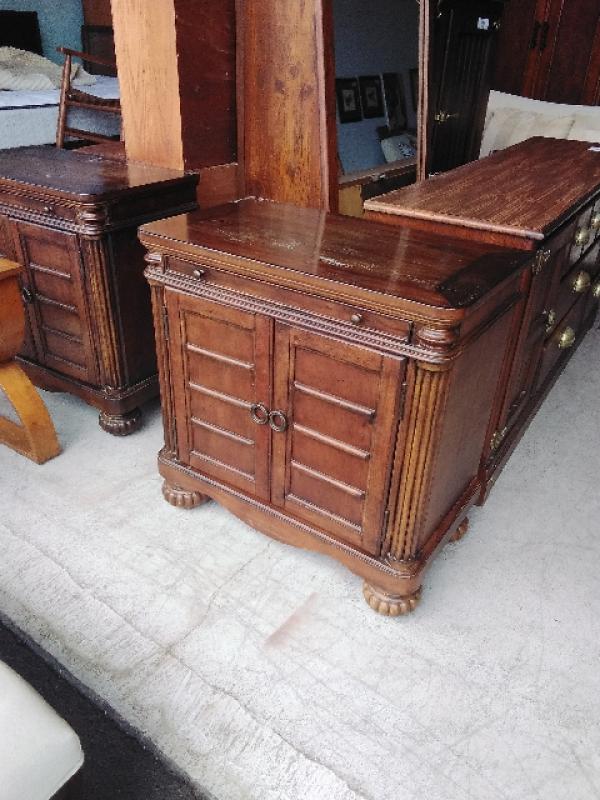 High end contemporary night stand with pull out table, 2 doors, inside shelf.