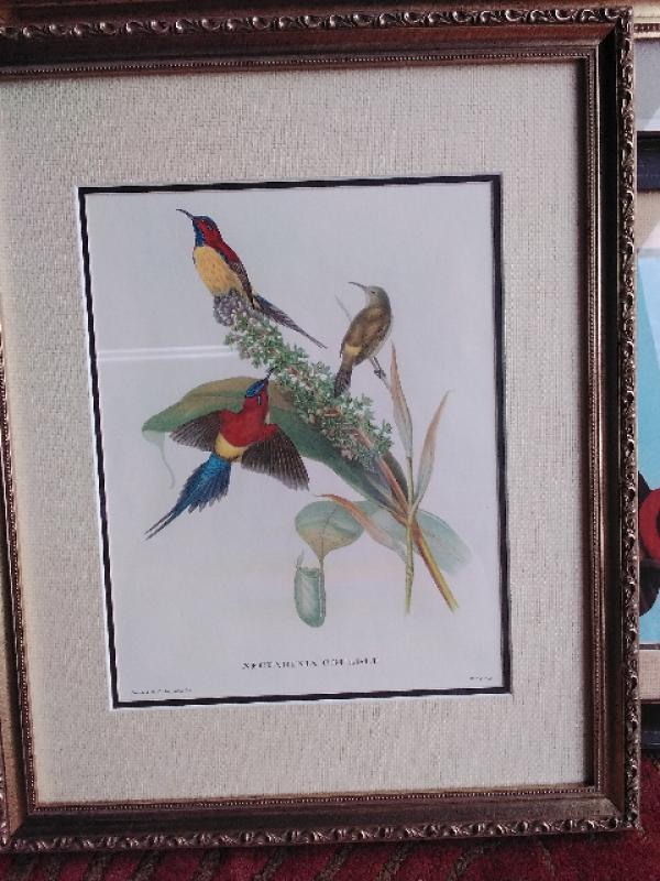 Framed picture ''Red hummingbirds'', 23x18.
