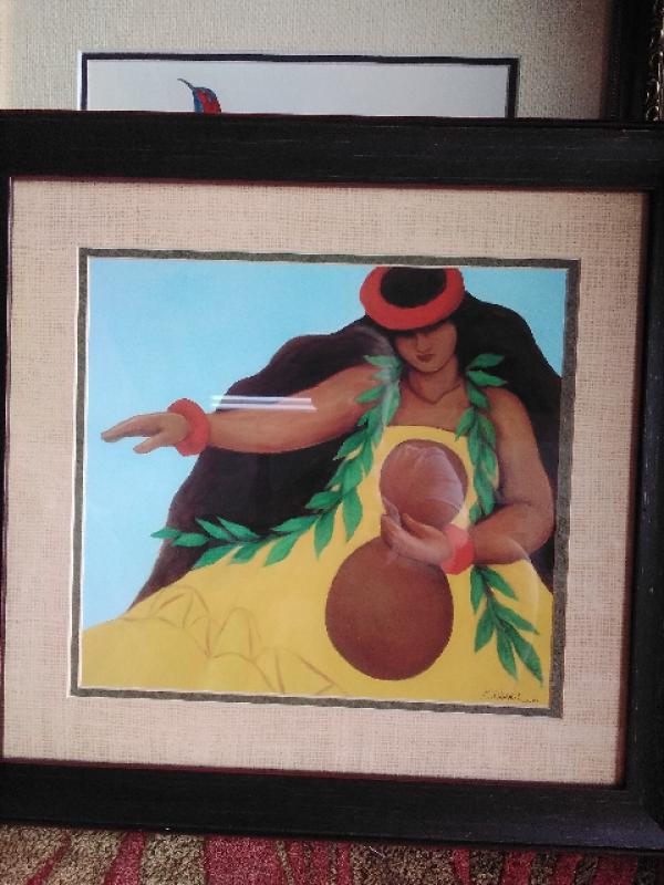 Framed picture Hula dance girl in yellow, abstract 17x18.