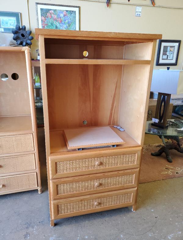 Tall cabinet w/3 drawers on the bottom, with swivel tray.