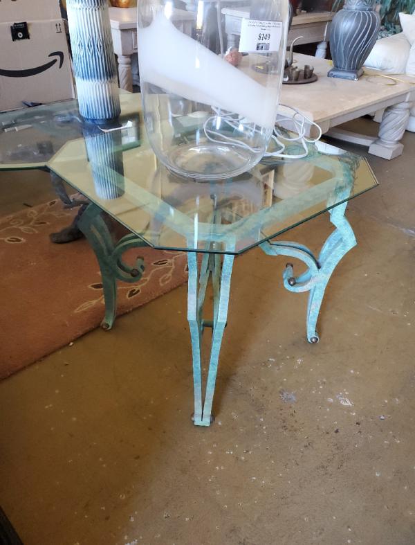 Square End Table with Glass green.