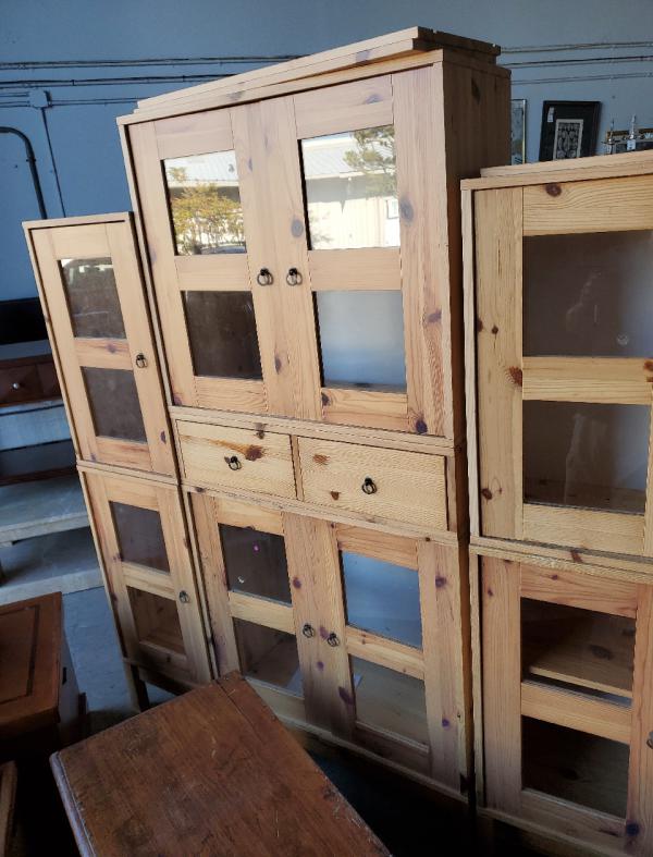 Tall wood cabinet with glass doors top, bottom and mid sections - 3 pcs..