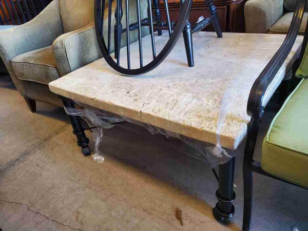 Stone top square coffee table.