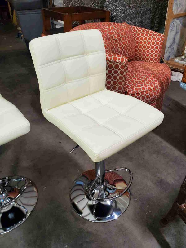 Adjustable 24'' - 30'' Metal Barstool with Beige seat.