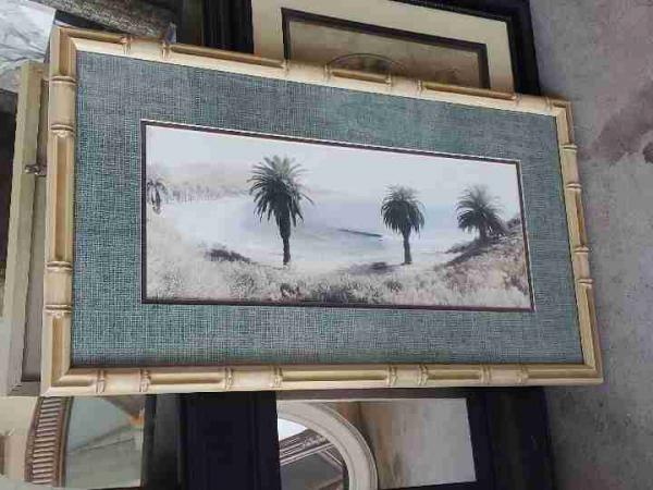 3 Palm trees Vintage beach coast Framed in Bamboo Frame.