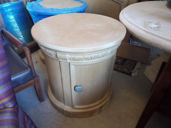 Round 1 door Nightstand Stone top Oak and Rattan.