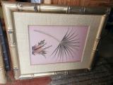 Picture - Tropical Motif - Gold Bamboo style frame .