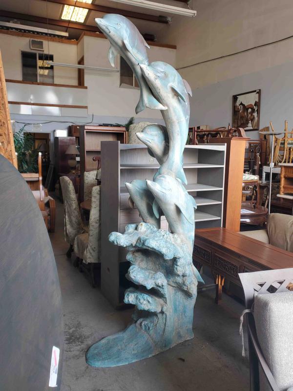 8 ft Tall Spouting Dolphins Metal Statue - Fountain .
