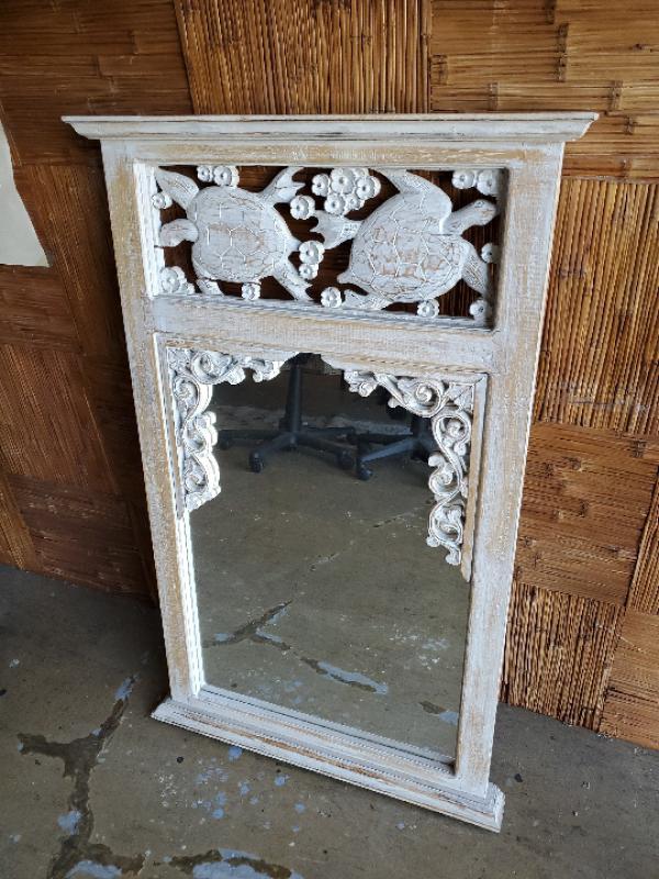 Indonesian Mango Wood White wash mirror with carving.