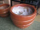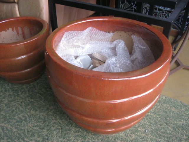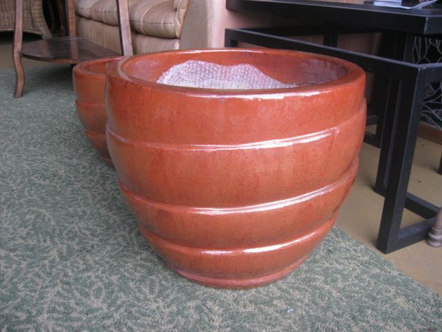 Large ceramic orange/bronze color pot measuring 18 1/2'' in diameter and 16'' tall.