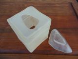White Tissue Box with lid measures 5 1/2'' wide, 5 1//2'' deep and 6'' tall.
