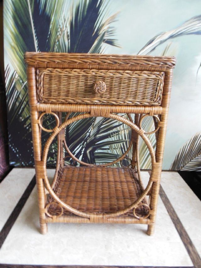 Wicker One Drawer Night stand measuring 17'' x 17'' x 25'' tall.
